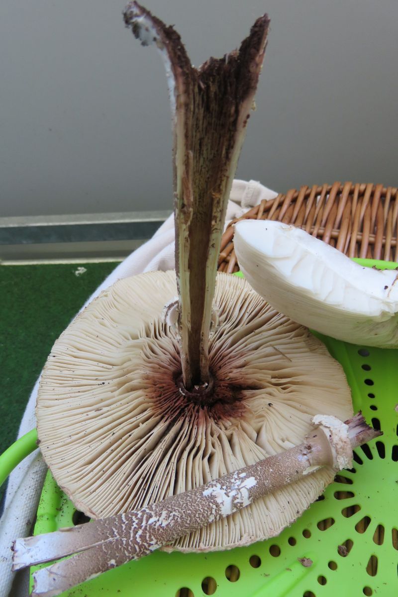 Also Parasol oder aus der näheren Verwandschaft. Aber der Pilz ist schon kurz vor dem Mumienstadium oder von irgendwas "befallen". Der Übergang Stiel zum Hut zeigt das besonders gut!