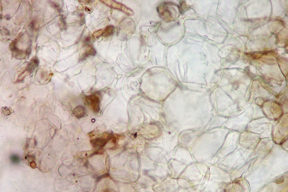 Das Hymenium ist pink und reagiert auf Lugol grün.