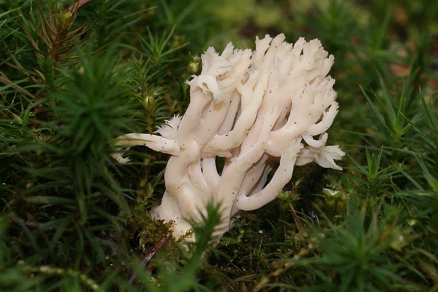 Am 19.09.2008 nach einigen frostnahen Nächten fanden wir in Braunlage im Nadelwald zwar kaum noch essbare Pilze, dafür habe ich diesen hier erstmals überhaupt gefunden. Ich denke, dass es die Kammkoralle Clavulina coralloides ist. Größe etwa 3,5 bis 4,5 cm.