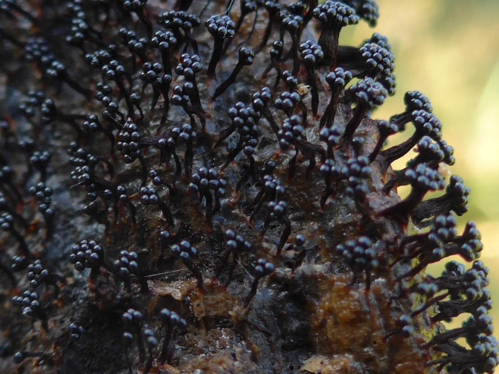 Es ging auch ganz gut los. Ein Teilnehmer hat diesen interessanten Schleimpilz gefunden. Toffel hat den auf dem Foto nachträglich als Metatrichia floriformis bestimmen können.
