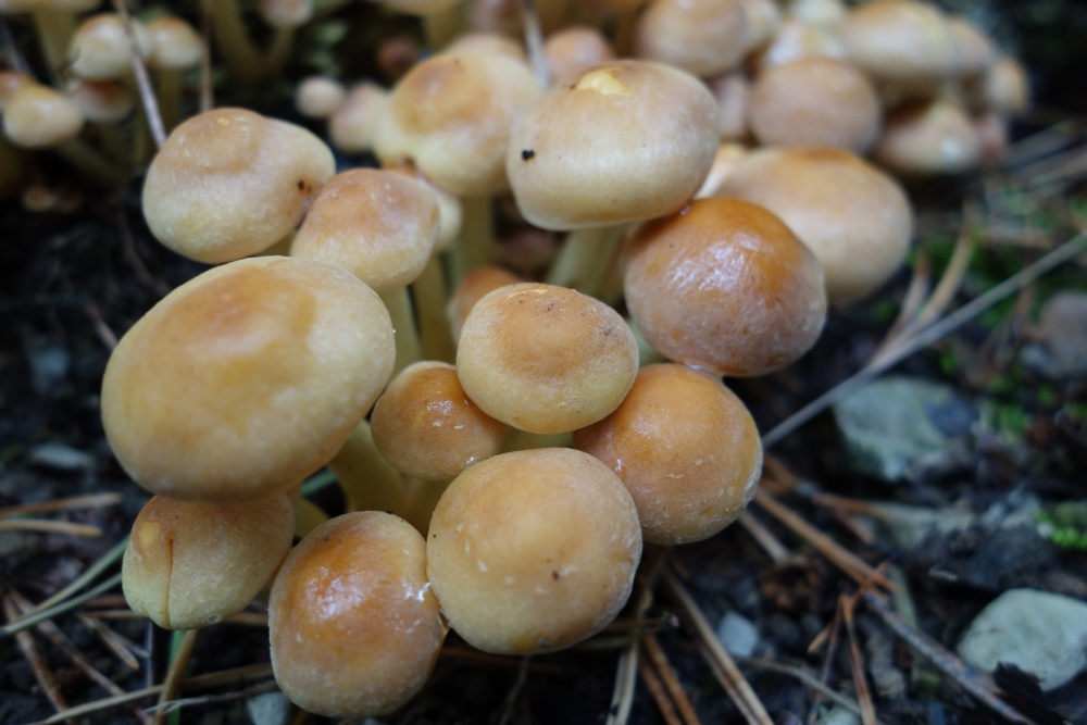 Nr.22: Ich meine mich zu erinnern dass die Stielbasis plüschig war. War aber nicht so leicht zu beurteilen weil der Pils fast ohne Übergang in ein Myzel mit viel Blattwerk dran überging..