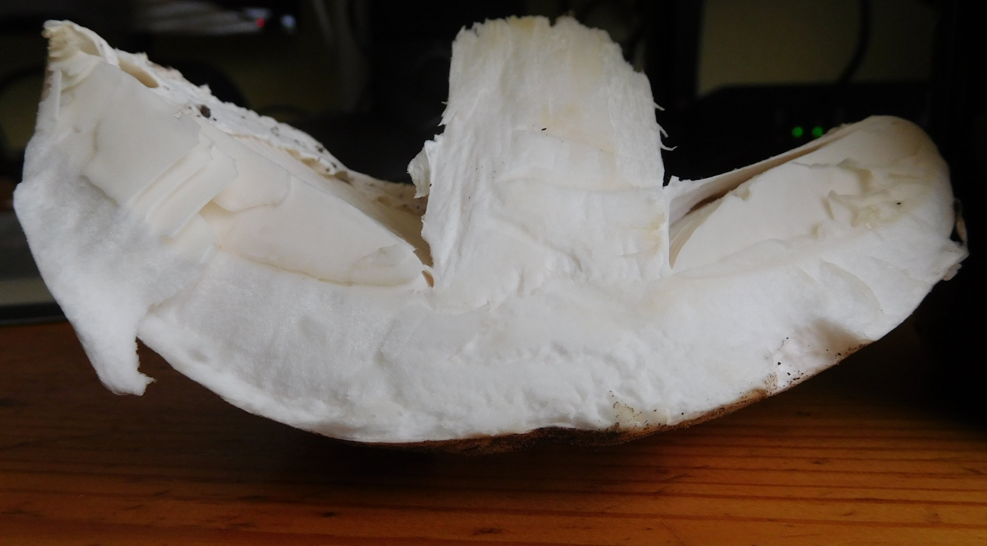 Klar, die Velumreste des Hutes sind vergänglich, und wenn's stark regnet sowieso. Ein paar kleine Flocken meinte ich zu sehen, aber das mag auch nur Erde sein.
