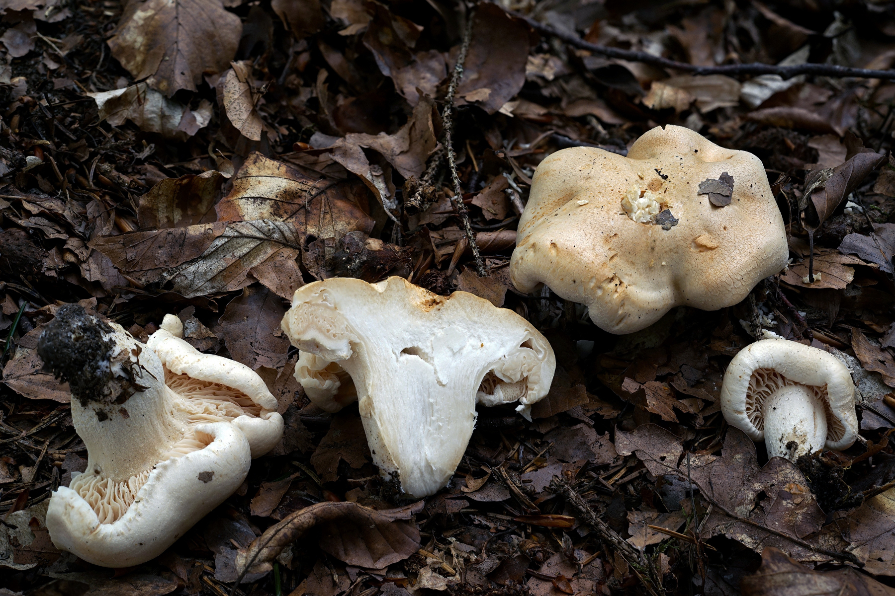 PS.: Leucopaxillus glaube ich nicht; zumindest den Dreifarbigen (Leucopaxillus tricolor = Leucopaxillus compactus) kenne ich recht gut, das ist schon habituell ein ganz anderer Pilz.