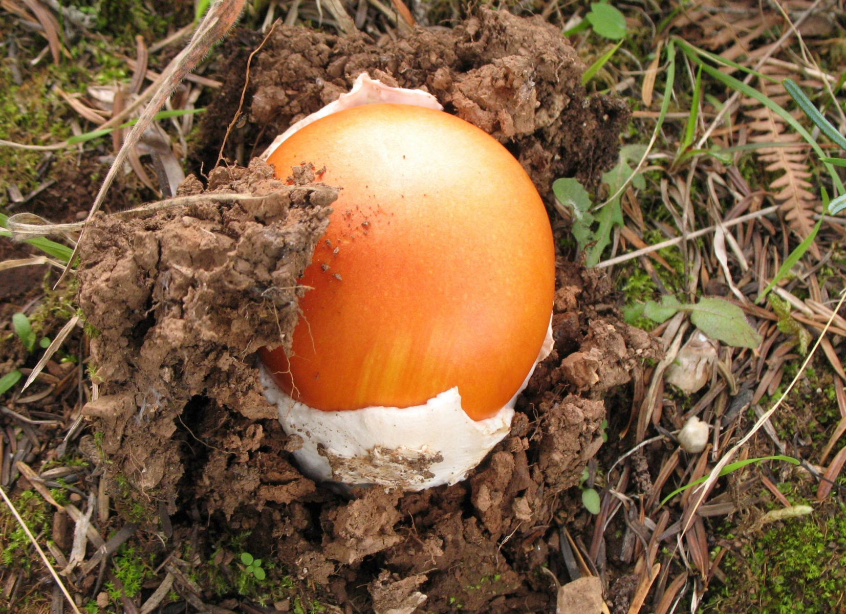 • Fangen wir an mit der Majestät. Kaiserling, Amanita caesarea. Die gab es diesmal in so großen Mengen, dass wir nach fünf Minuten jeder einen Korb voll hatten.