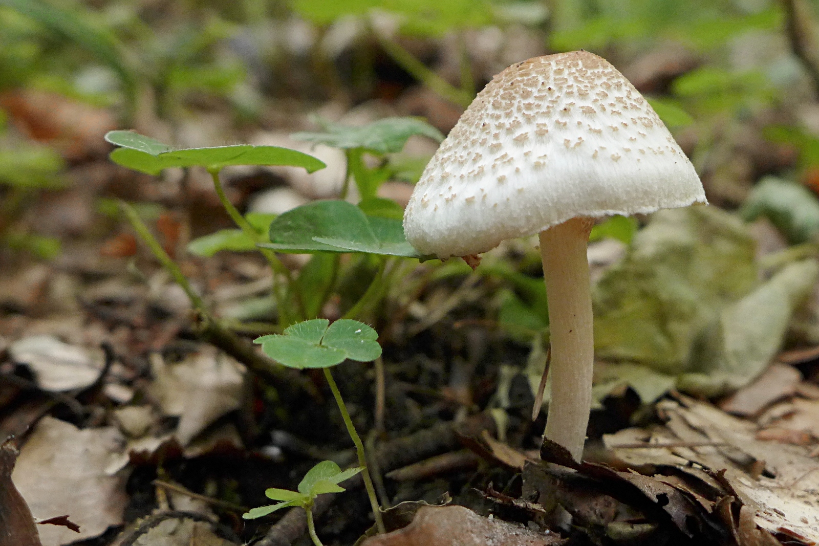 Nebenan standen einmal einige Stinkschirmlinge, Lepiota cristata (der wollte in den Beitrag) und auch Spitzschuppige Schirmlinge (Lepiota aspera). Da konnte ich auch noch mal den Geruch ("cristaoid") vergleichen. Deutlich beim Stinkschirmling, beim Spitzschuppigen etwas anders, für mich nicht unangenehm.