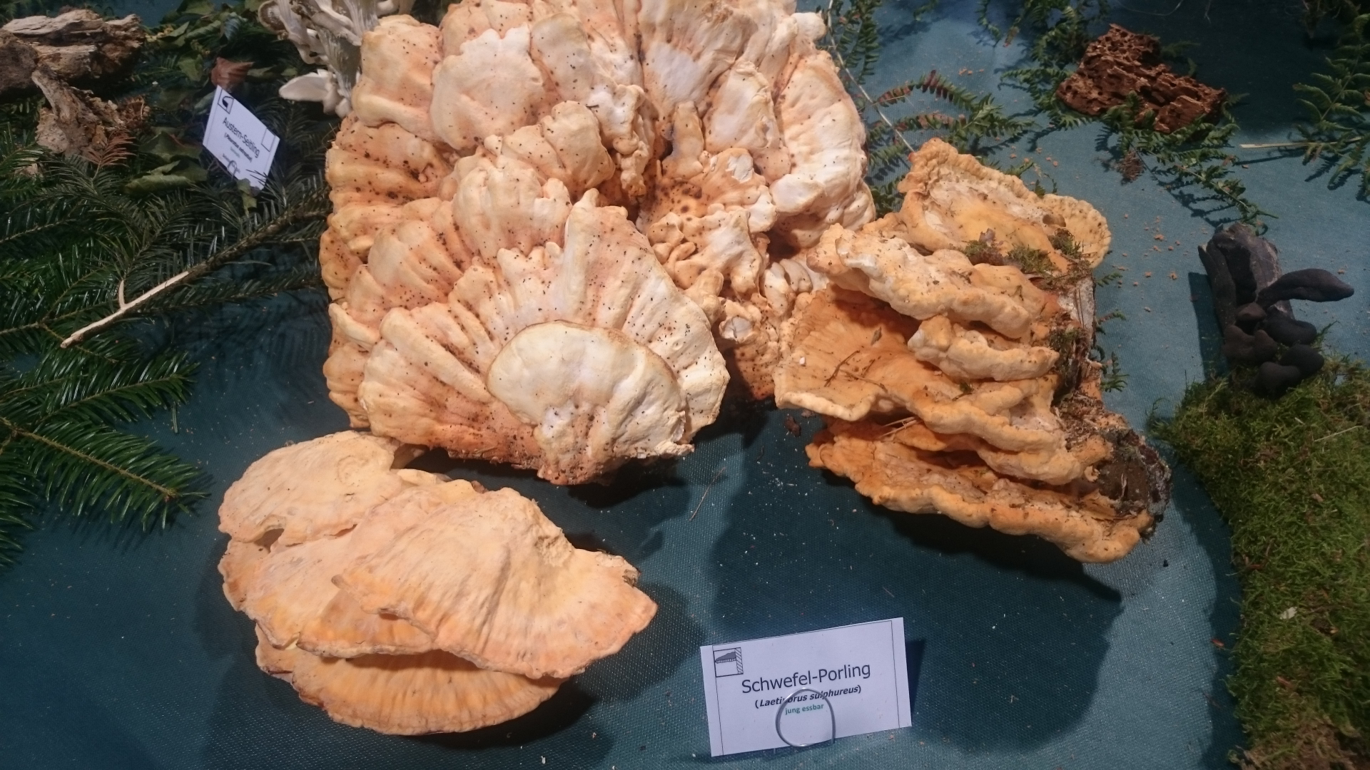 auf derselben Ausstellung war ich auch am Sonntagnachmittag zum ein bisschen mithelfen, und war wie du beeindruckt, was das Team um die beiden Manfreds da trotz schwieriger Bedingungen auf die Beine gestellt hat. Die Pilze in deinem Körbchen hast du ja vermutlich alle bestimmt bekommen (Stahlblauer Rötling, Fliegenpilz, Kuhmaul, Schopftintling habe ich gesehen, und natürlich auch deinen Speisetäubling, der als Solitärexemplar an der Ecke eines Tisches einen tollen Platz zugewiesen bekam).