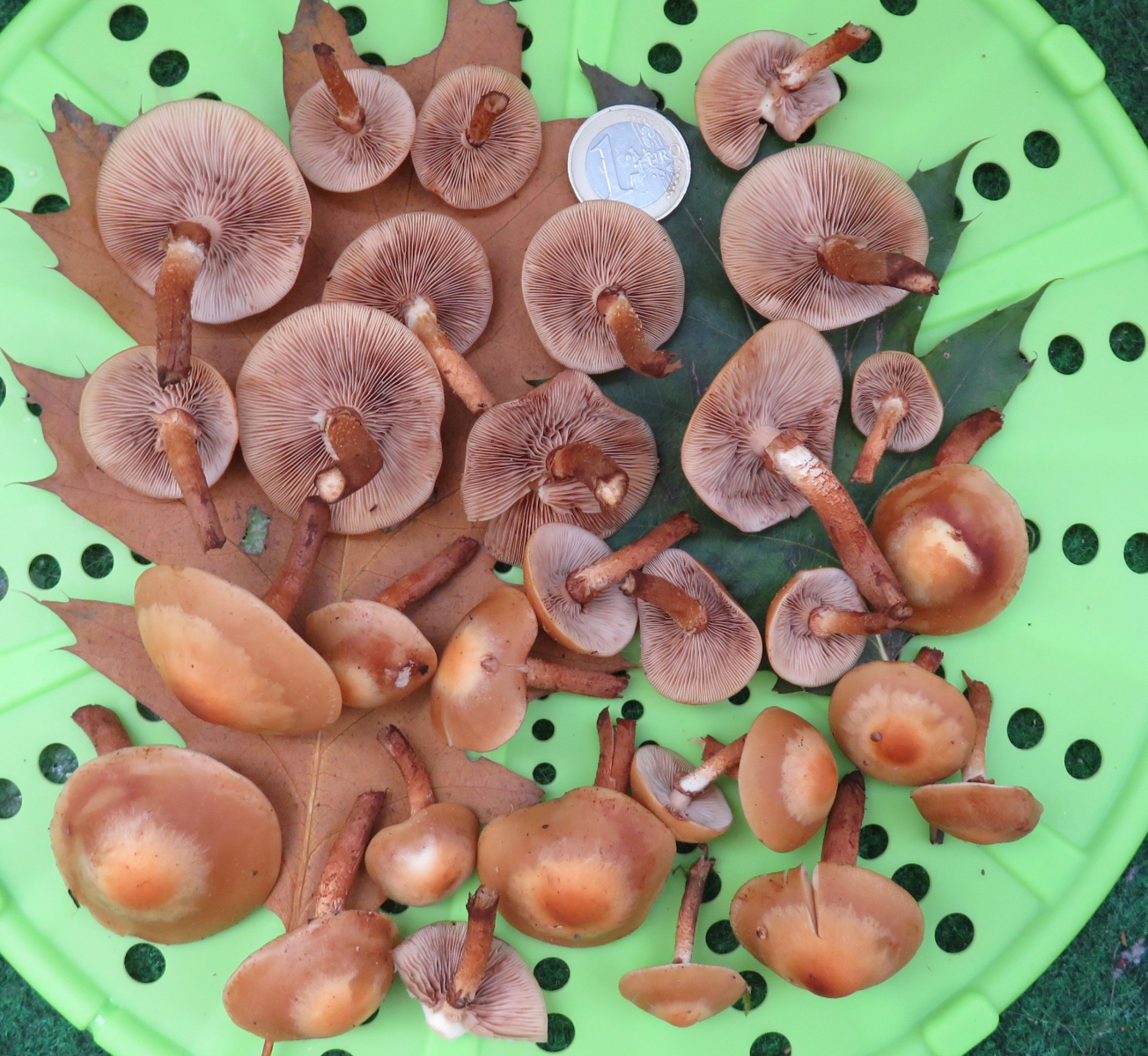 1) Ich traue mich jetzt an die Stockschwämmchen (Kuehneromyces mutabilis) heran. Bei diesen Pilzen bin ich mir eigentlich sicher dass es Stockschwämmchen sind, aber da ich die Stockschwämmchen noch nie gegessen, sondern nur zur Bestimmung mitgenommen habe, bitte ich euch um unverbindliche Bestätigung meiner Bestimmung (selbstverständlich ohne Verzehrfreigabe).