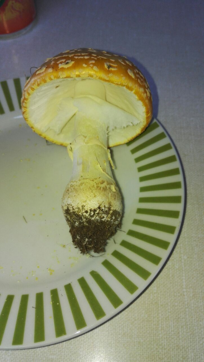 Aber das ist ganz klar ein Fliegenpilz, entsprechend bitte nicht (!) davon naschen...sofern ihr das überhaupt ernst gemeint habt;DUm "ganz klar ein Fliegenpilz" zu sein, fehlt hier aber der Warzengürtel um die Knolle.
