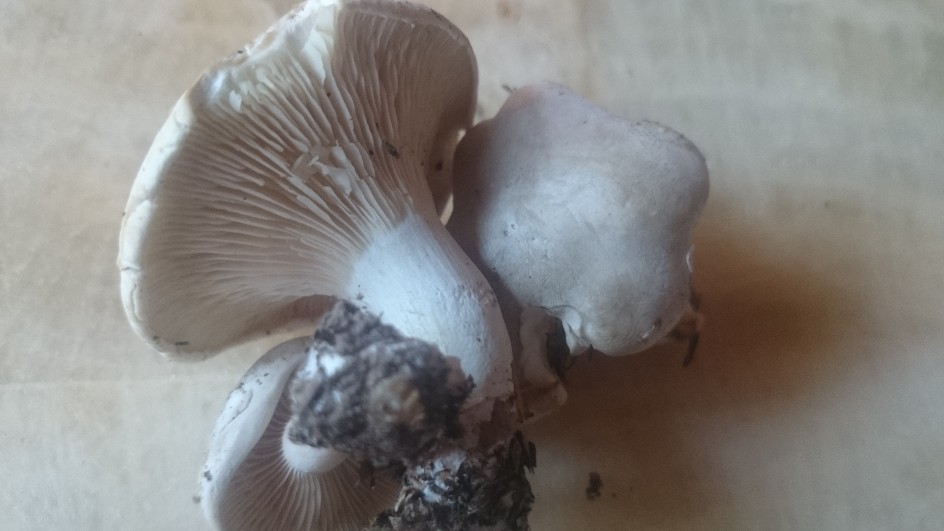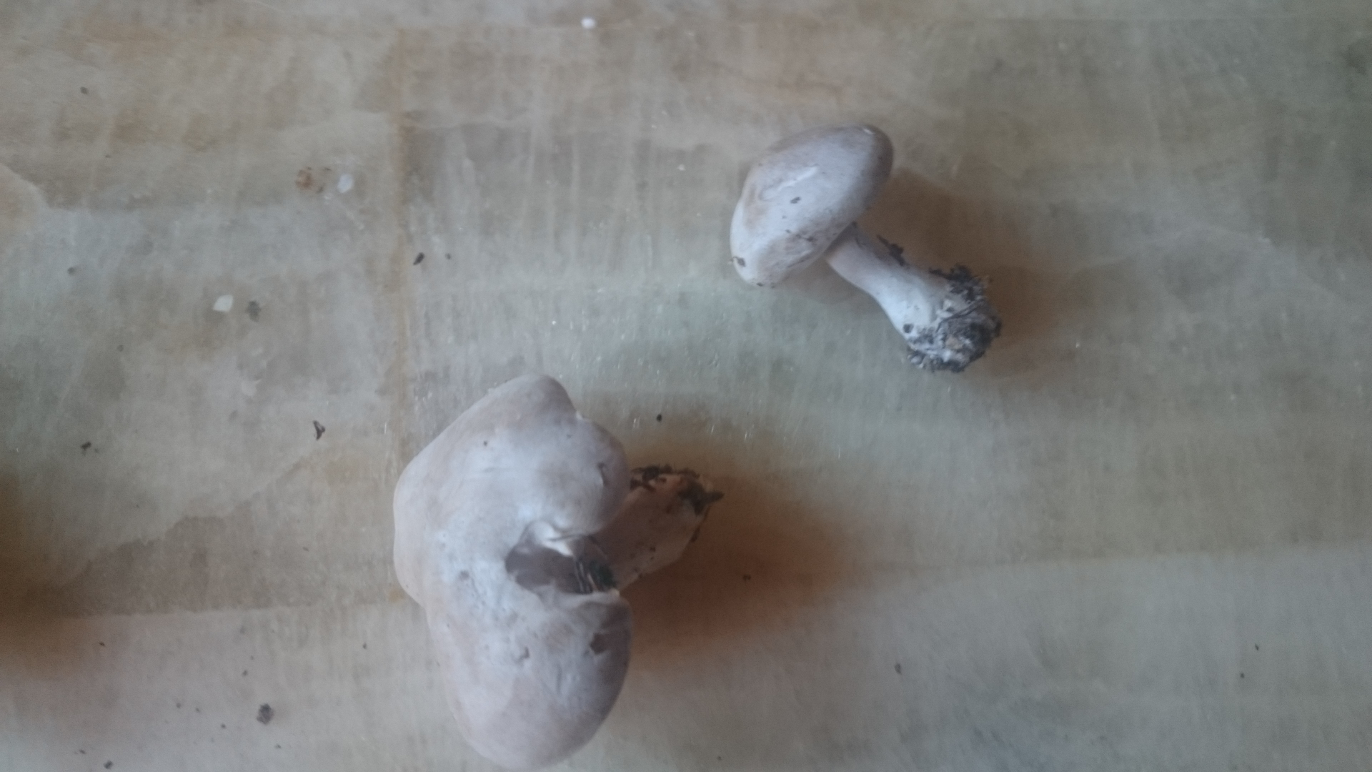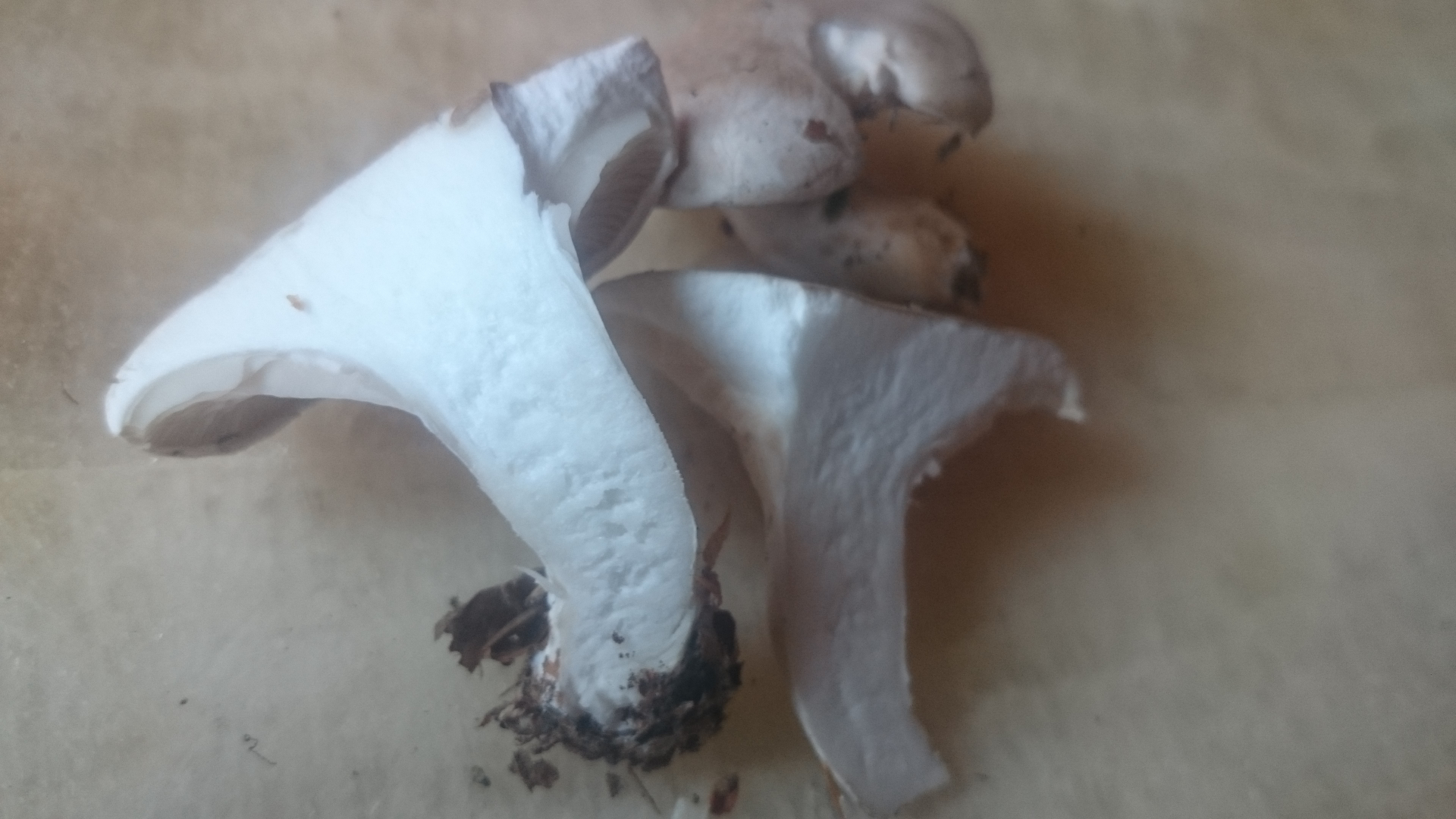 Ich habe von einem, habe zwei mitgenommen, den Stiel abgeschnitten, den Hut auf weißes Papier
