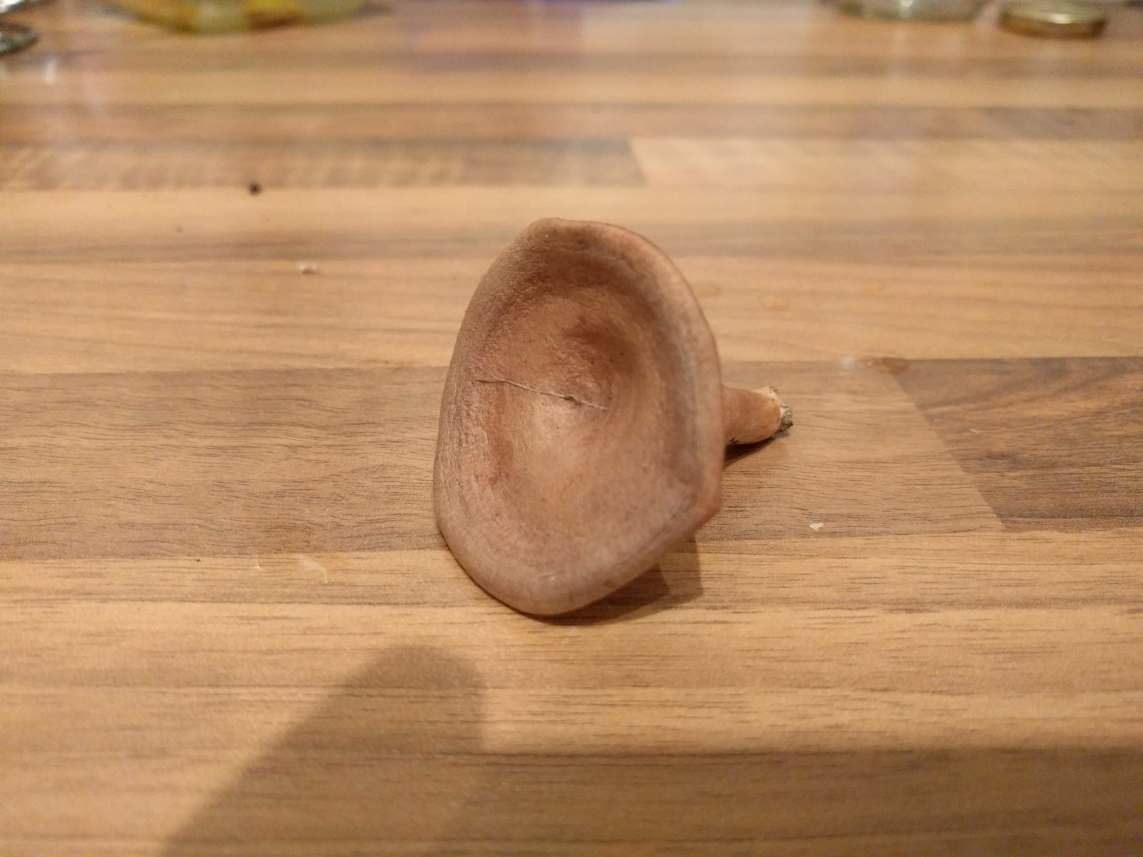 ist nur so ne Idee, aber als erstes musste ich bei dem Fruchtkörper an alte L. helvus (Maggipilz) denken. Riecht denn dein Fund nach Maggi?Ich bin da bei Stefan, der Fruchtkörper wirkt auf mich wie ein völlig vertrockneter Milchling. Wenns der Maggi-Pilz ist dann ließe sich das aber auch in diesem Zustand durch einen Geruchstest herausfinden