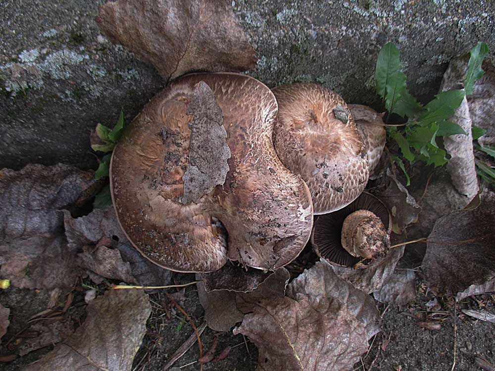 das ist ganz klar der Gegürtelte Egerling mit seiner schönen braunen Hutschuppung. Wenn sie morgen in dieser Parkeinbuchtung noch da sind mache ich noch ein Schnittbild. Vom Stadtchampi kenne ich das ja, der durchbricht auch schon einmal eine Asphaltdecke oder hebt kleinere Pflastersteine hoch.