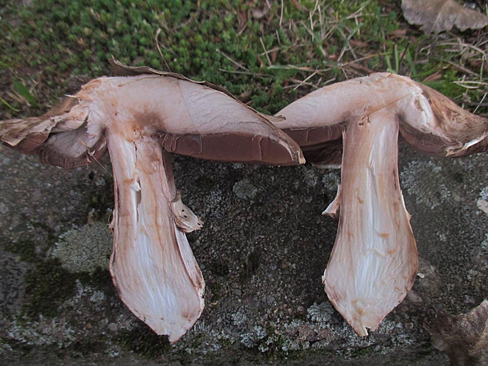 ich glaube, du hast den Stadtchamignon gefunden (Agaricus bitorquis). Dein Gegürtelter Ch. hat nicht diesen Standort und ich kenne nicht, dass der sich durch Asphalt oder Rinnsteine zwängt. Außerdem sieht man bei deinem Bild nicht den gegürtelten Stiel, sondern mehr diesen doppeltebn Ring, was für Stadtch. spricht. Etwas irritierend für mich ist der Hut.