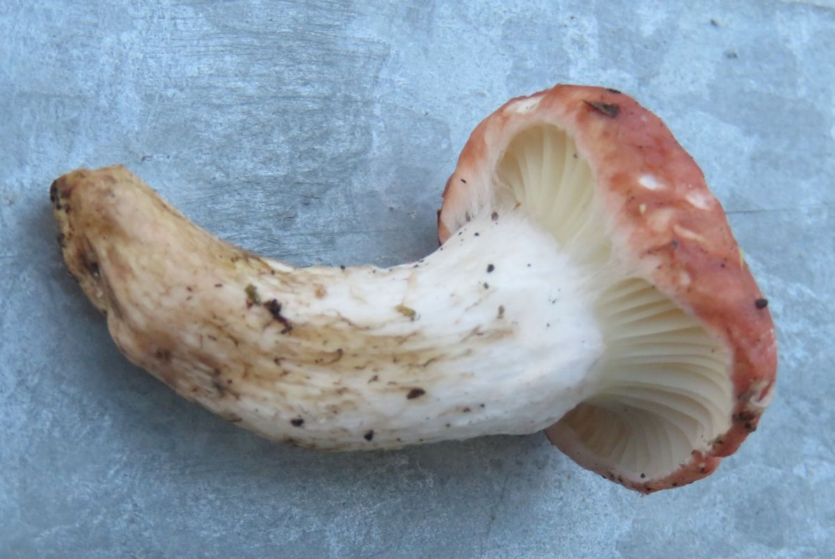 Ein riesiger 100-Gramm-Täubling. Die Lamellen sind entfernt stehend und extrem brüchig.