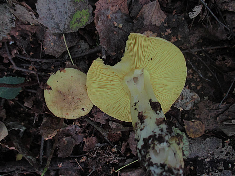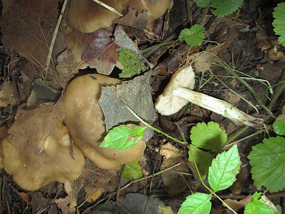 Zwei große Trupps vom Pappel-Grünling (Tricholoma frondosae) waren zu finden.