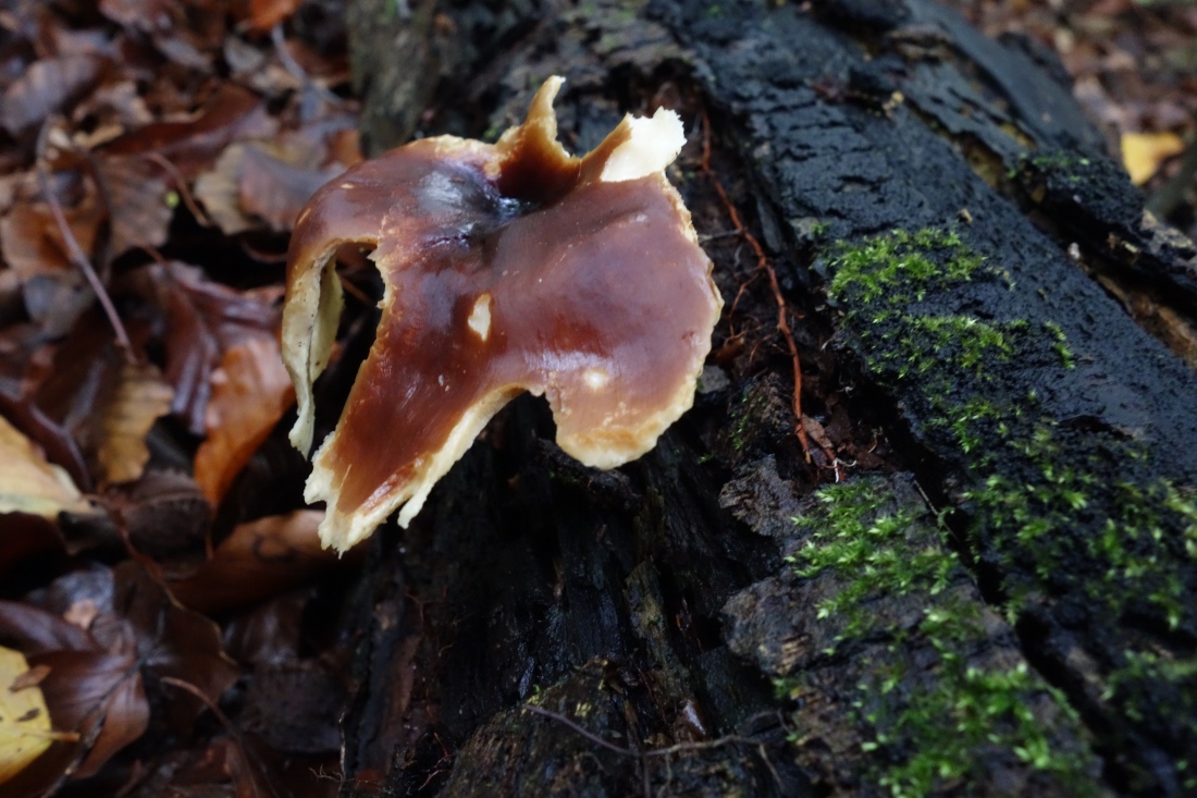 6) Ein kläglicher Rest eines mutmaßlichen Kastanienbraunen Stielporlings (Polyporus badius), vermutlich an Buche.