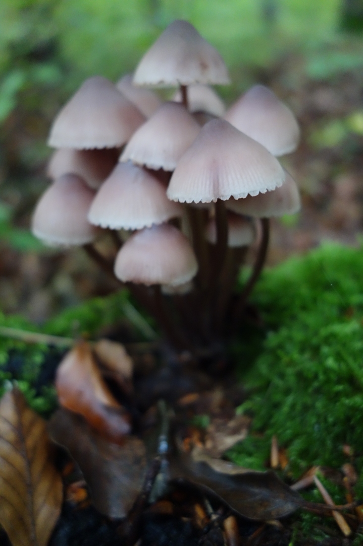 16) Der häufigste Pilz im Wald war der Rosa Rettichhelmling (Mycena rosea) dicht gefolgt von seinem Bruder dem Gemeinen Rettichhelmling (Mycena pura).