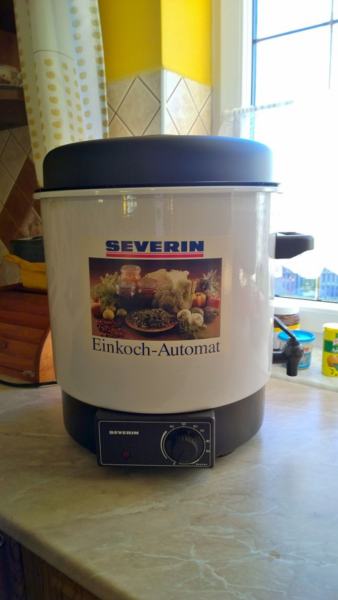 Zunächst ist logischerweise ein Einkochautomat anzuschaffen. Ich empfehle einen mit Ablasshahn, da man ansonsten die Gläser im heißen Zustand gar nicht entnehmen kann.