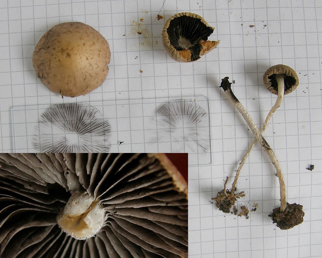 Das Velum ist sehr beständig, wie man sieht, die Hüte bekommen beim Antrocknen im Alter einen Rosaton, der aber später wieder verschwindet. Das Sporenpulver ist nahezu rein schwarz. Die Lamellenschneide ist nicht farblich unterlegt.