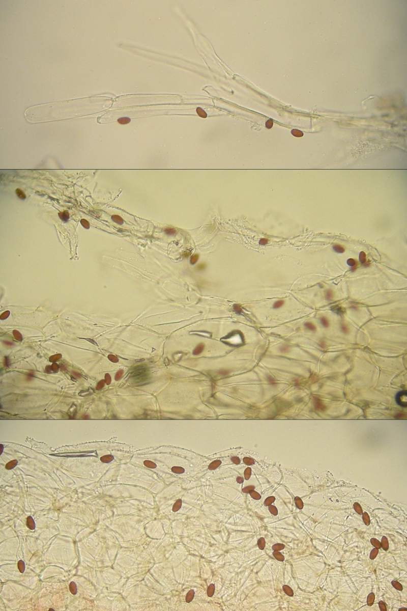 Mikroskopische Eckdaten: Hutvelum aus zylindrischen Zellen, keine Pileozystiden oder Haare; Schnallen gelegentlich vorhanden (Huttrama); Basidien vorwiegend viersporig, Cheilos gedrängt, häufig, nur wenige kugelige Marginalzellen zu sehen (unpigmentiert), vorwiegend flaschenförmig, gelegentlich mit undeutlichen, körneligen Anlagerungen;