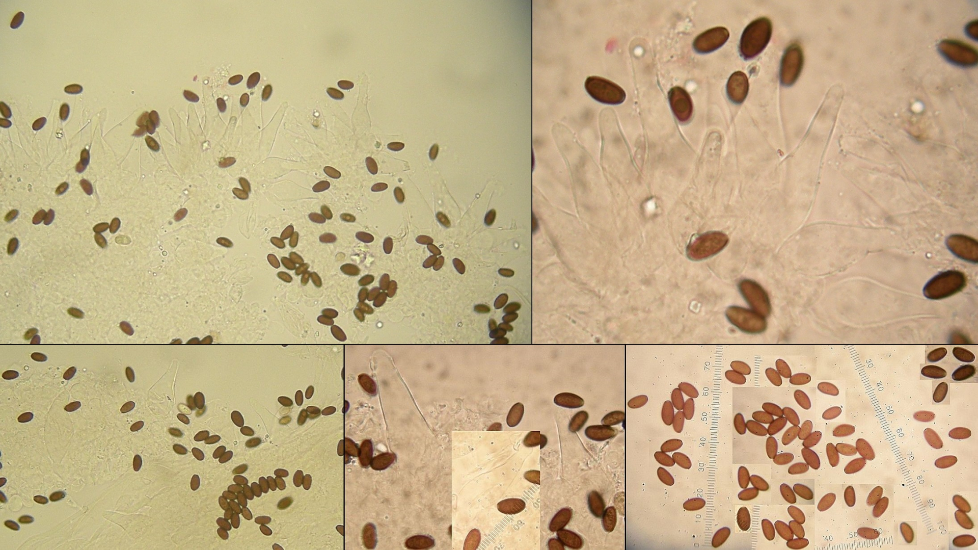 Pleuros häufig, vorwiegend flaschenförmig, selten fast utriform, gelegentlich subcapitat; Sporen bis 9,5x5, KP groß (>1 µm), deutlich (auch wenn auf meinen Bildern schlecht zu sehen), zentral, Sporen in KOH dunkler, trüb graubraun bis olivbraun