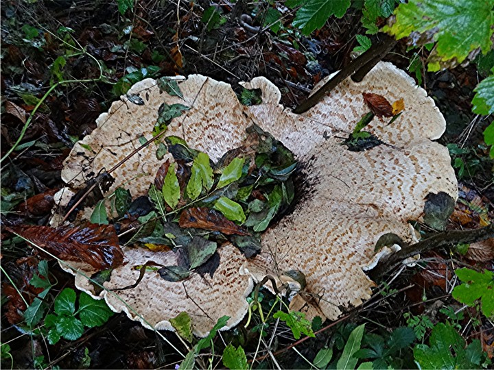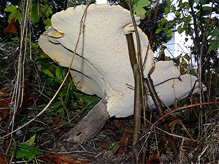 Riesiger porling mit dunklem Stiel