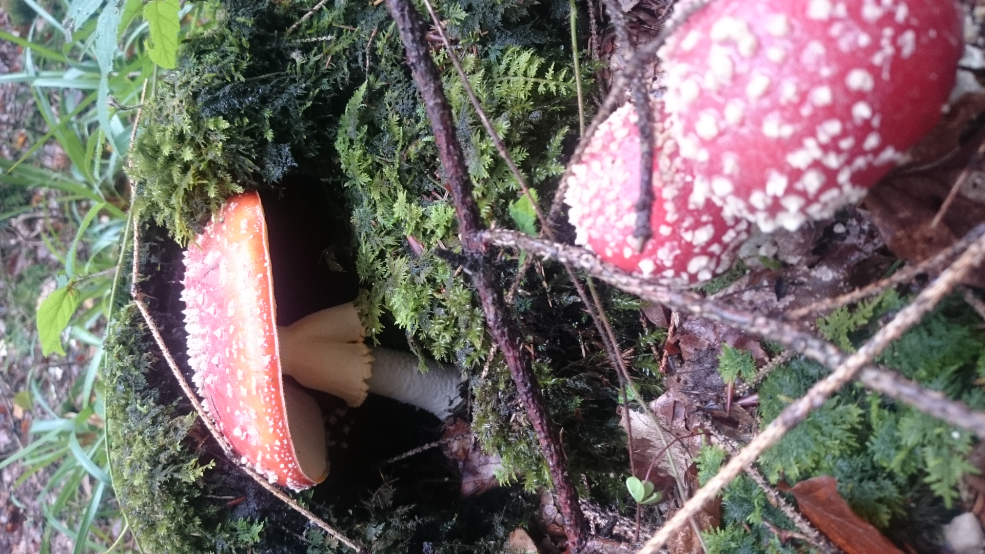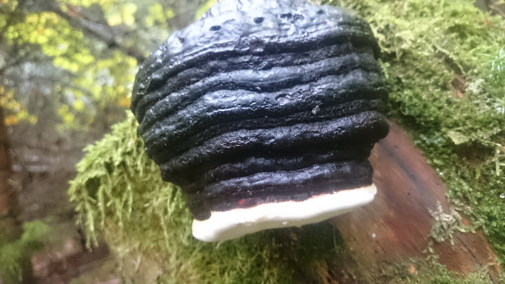der dicke schwarze Pilz dürfte der Zunderschwamm (Fomes fomentarius) sein. Und das schöne rote Männlein im Walde brauche ich sicher nicht erklären.