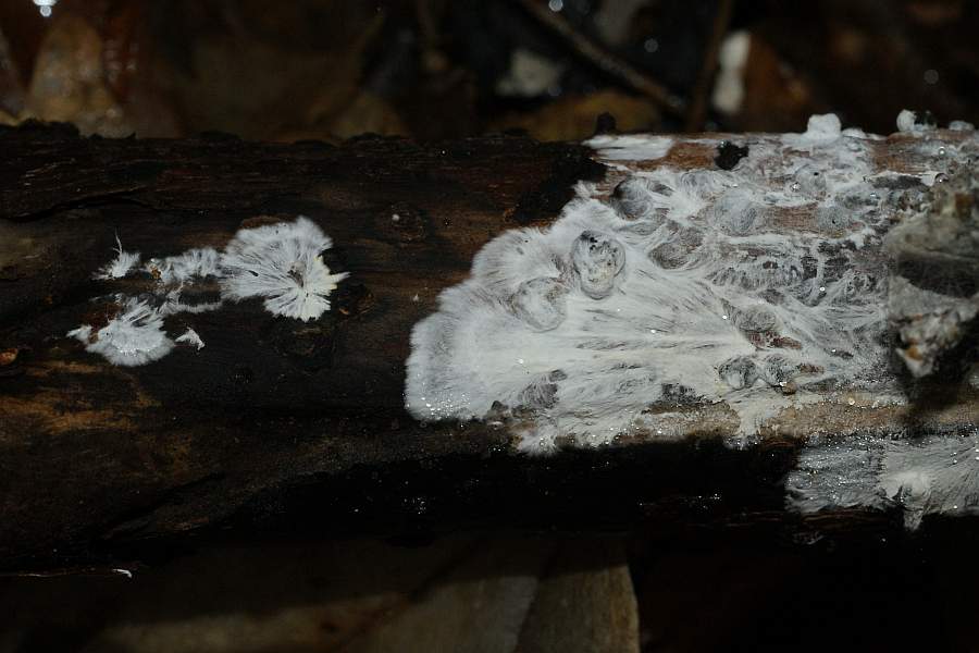 Er überzieht das Substrat wie eine dünne Watteschicht und bildet teilweise federähnliche Strukturen aus, die an den Spitzen strahlenförmig enden. Sehr entfernt ähnliche Fransen sind im LAUX beim Gefransten Resupinatstacheling zu sehen.