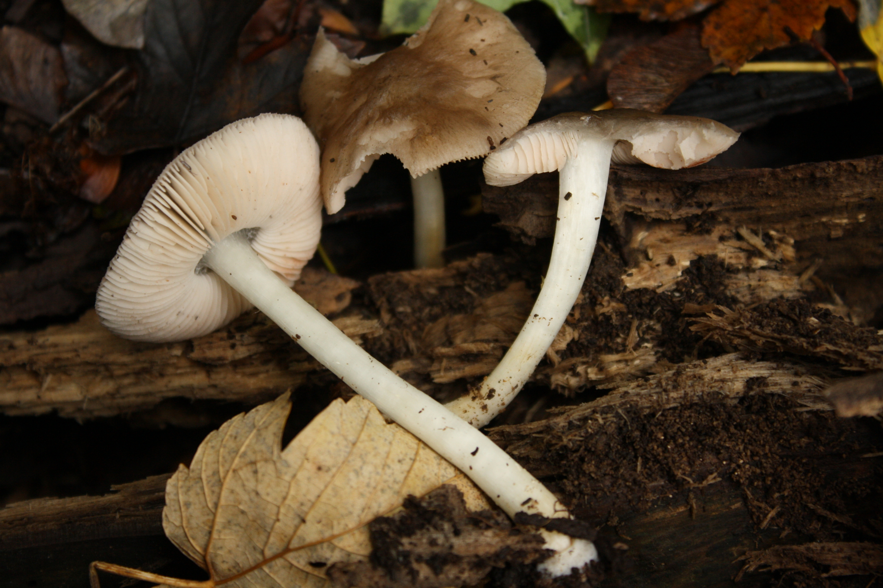 Diesen Dachpilz fand ich heute im Wiener Prater, er wuchs an einem morschen Laubholzstück. Der Stiel ist reinweiß und irgendwie hyalin bzw. so knorpelig - keine Ahnung, wie ich das ausdücken soll. Der Geruch ist neutral, der Hut in der mitte so ein bisschen grubig-runzelig, der Hutrand leicht gerieft.