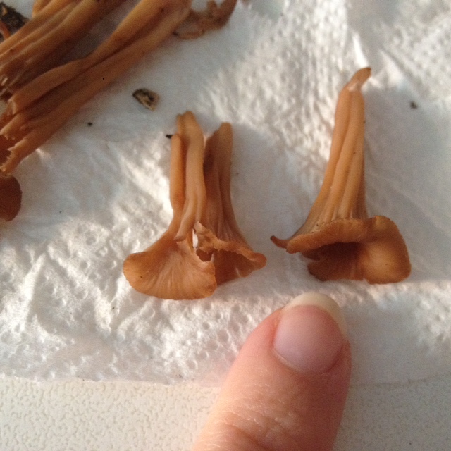 ich habe heute eine kleine Gruppe von ockerfarbene Leistlingen gefunden. Sie sind ca. 3cm klein, auf Totholz gewachsen (Buche?) und riechen stark, ein bisschen Marzipan-artig. Könnte das ein Trompetenpfifferling sein?