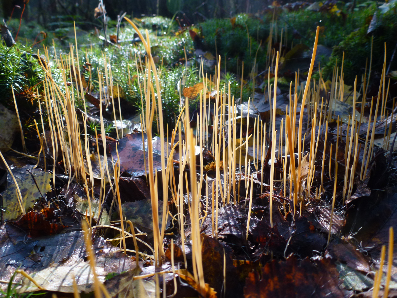 bei Durchsicht meiner vor zwei Tagen gemachten Fotos bin ich auf zwei gestoßen, bei denen ich mir nicht einmal sicher bin, ob diese überhaupt einen Pilz zeigen, ich meine aber ein entsprechendes Foto vor Kurzem hier gesehen zu haben - nur wo?