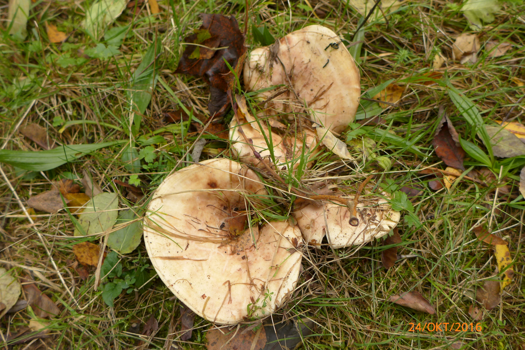 Der Träuschling könnte der Orangerote (Stropharia aurantiaca) sein, der erste Milchling erinnert an den Rosaschickigen (Lactraius controversus) und der zweite Milchling vermutlich der Flaumige Birkenmilhcling (Lactarius pubescens).