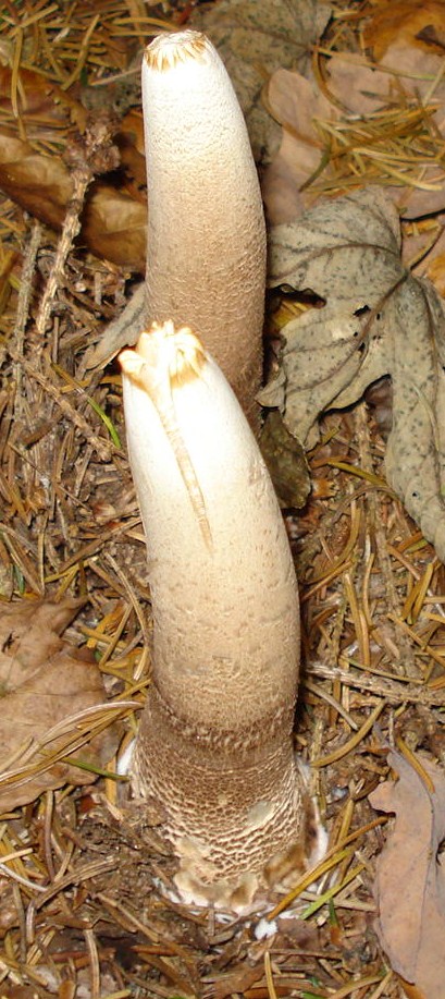 Beim 2. Pilz sind Dir Tiere oder andere Sammler zuvorgekommen. Ich halte das schlicht und einfach für Parasolstiele ohne Hut.