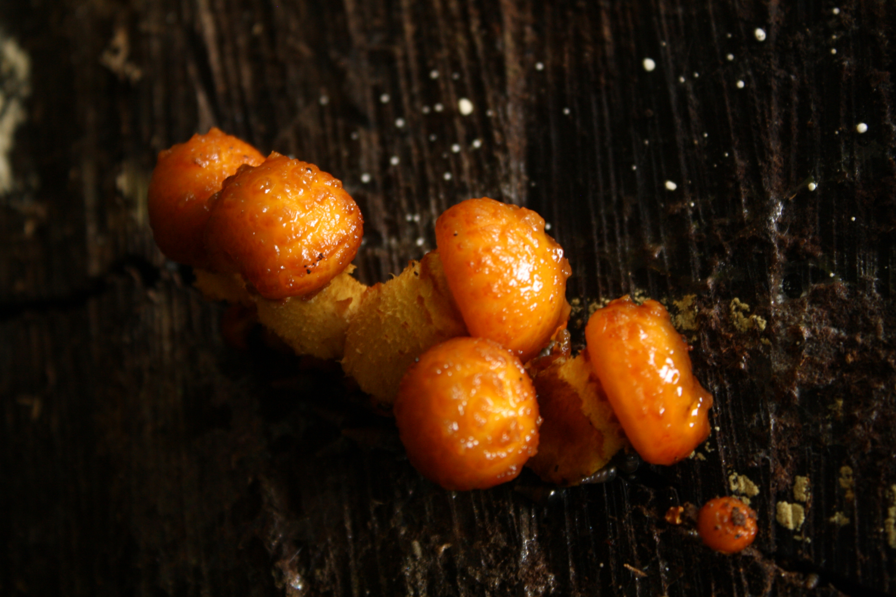Diesen noch sehr jungen Pilze habe ich heute an der Schnittfläche einer mächtigen liegenden Buche gefunden. Kann man die in diesem Stadium schon sicher benennen? Die Hutoberfläche war wirklich sehr schleimig. Könnte da Goldfell-Schüppling bassen?