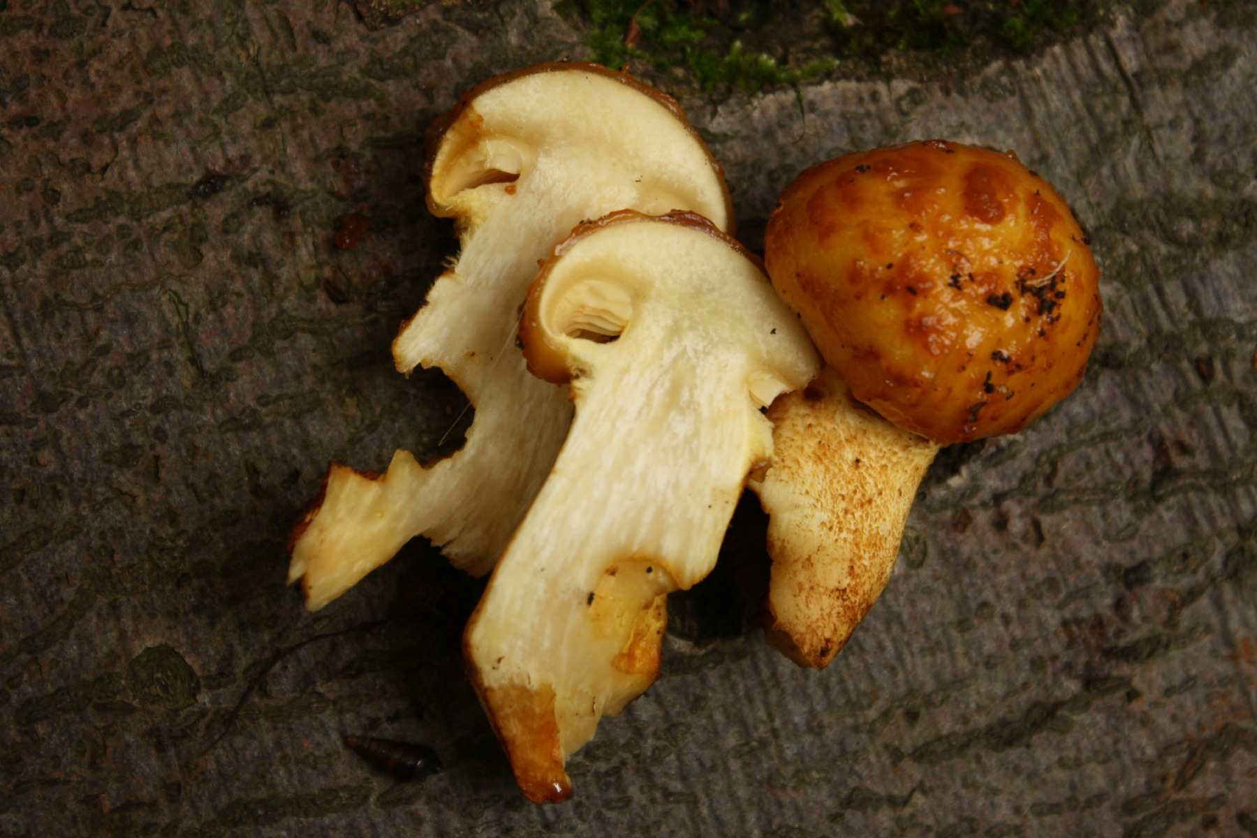 Mir ist halt dieser ziemlich dicke Schleim auf dem Hut aufgefallen, und das war echt schleimig... so einen schleimigen Pilz hatte ich glaub ich noch nicht. Wegen dieser Auffälligkeit dachte ich auch, er wäre vielleicht schon in diesem Stadium bestimmbar, aber offenbar gibt es da doch wieder mehrere ähnliche... Der Stiel ist mir übrigens nicht so schleimig vorgekommen. Ja, und limonella würde wirklich auch gut passen, obwohl ich aurivella und adiposa auch nicht ausschließen möchte. Jahnii glaub ich irgendwie nicht.