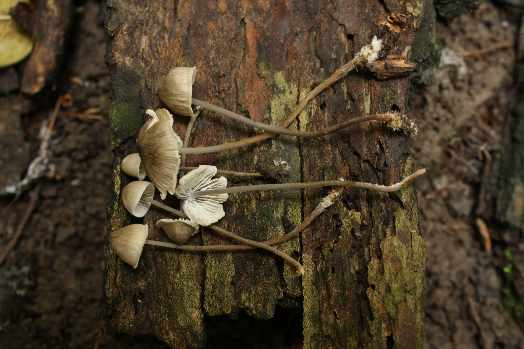so nach dem Bild und der Bereifung, und dem etwas wurzelnden Stiel könnte das sehr gut eine Mycenella sein; bei uns in den Rheinwäldern ist diese Gattung relativ häufig. Wie ich dem Bericht entnehme, habt ihr nicht mikroskopiert; das wäre dann ganz schnell geklärt!