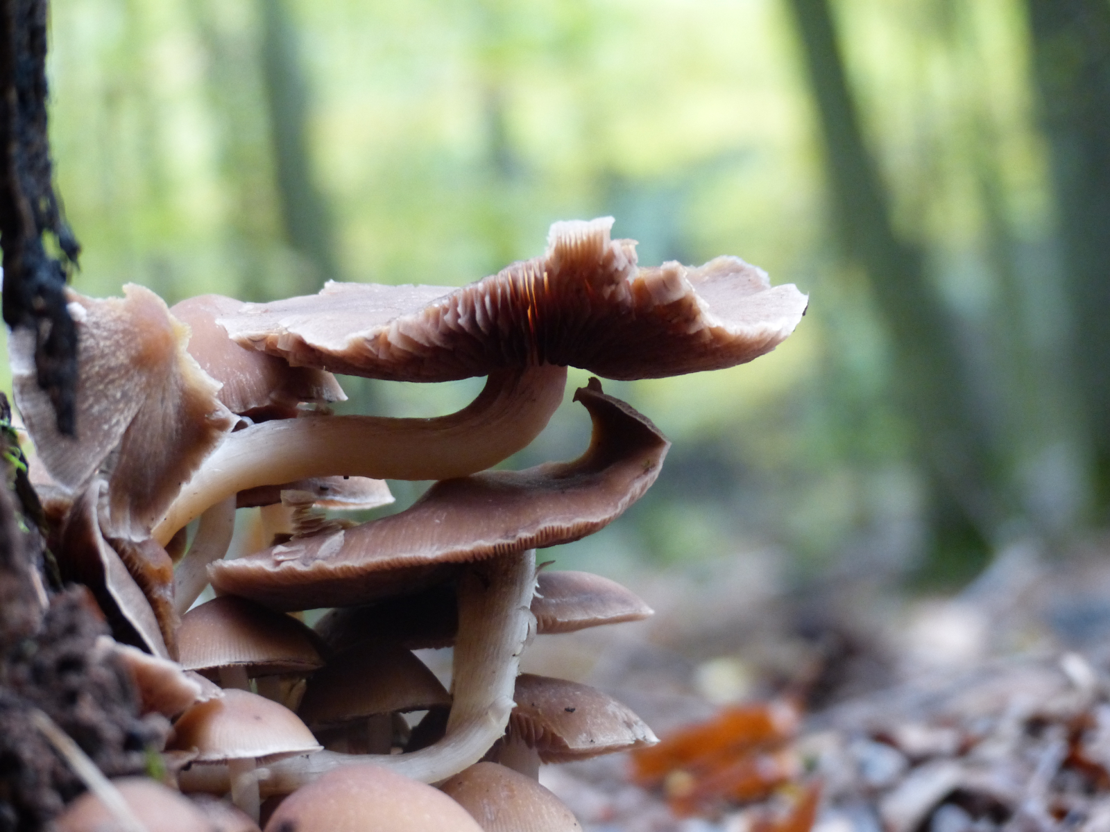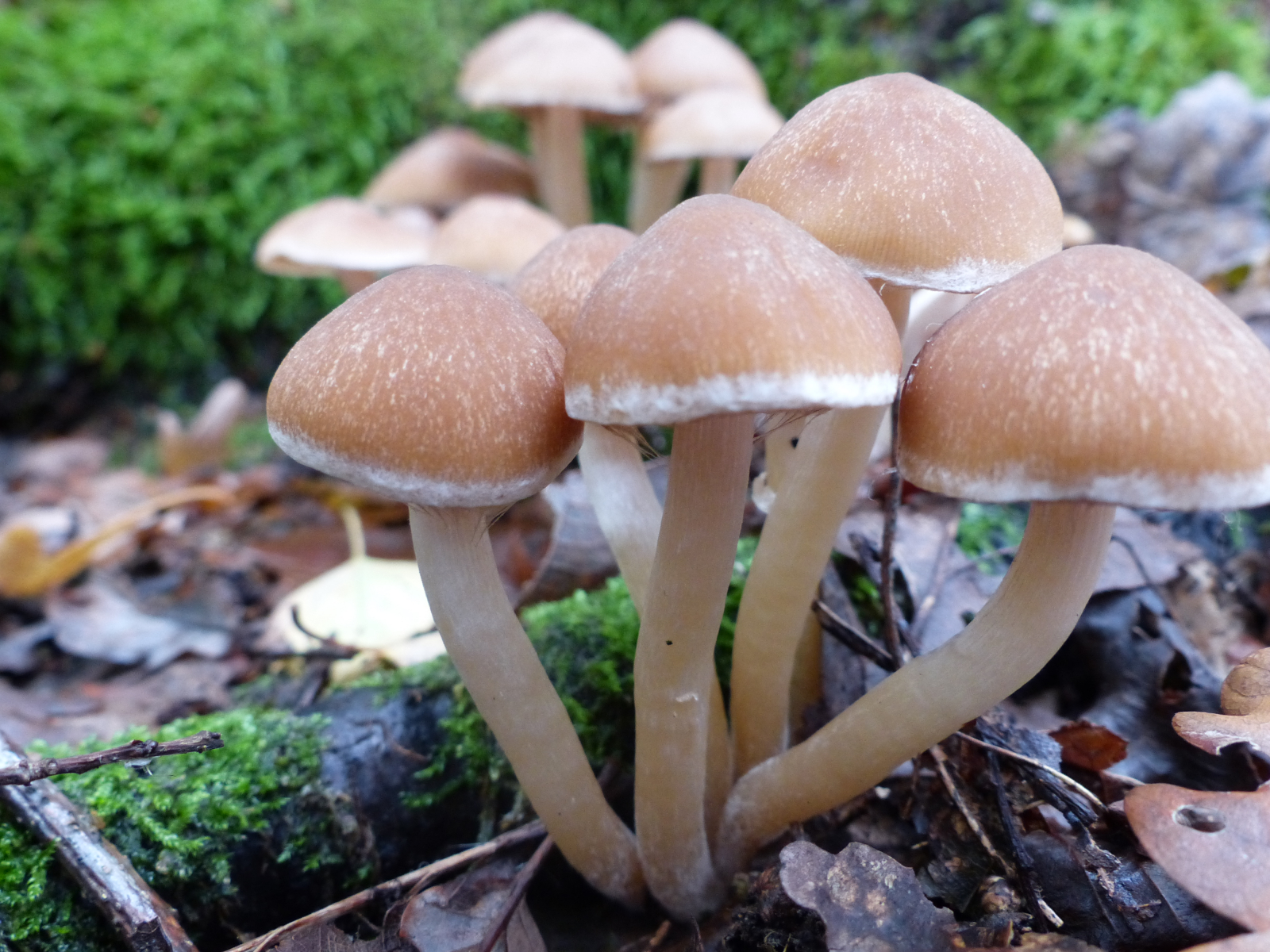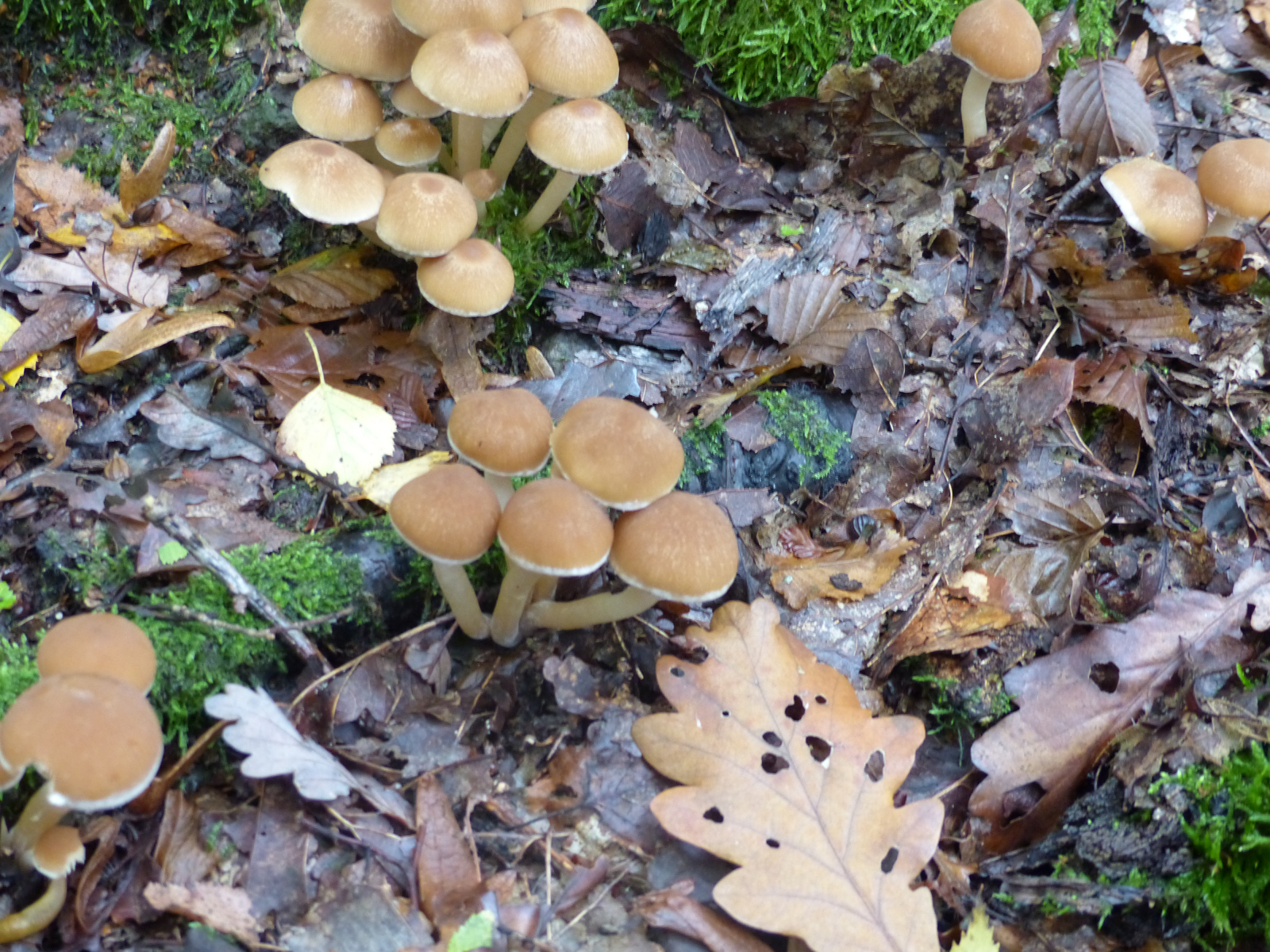 Gefunden: im Laubwald, unter Eichen und Buchen, Boden war mit Moss durchsetzt, an Totholz wachsend, büschelig,
