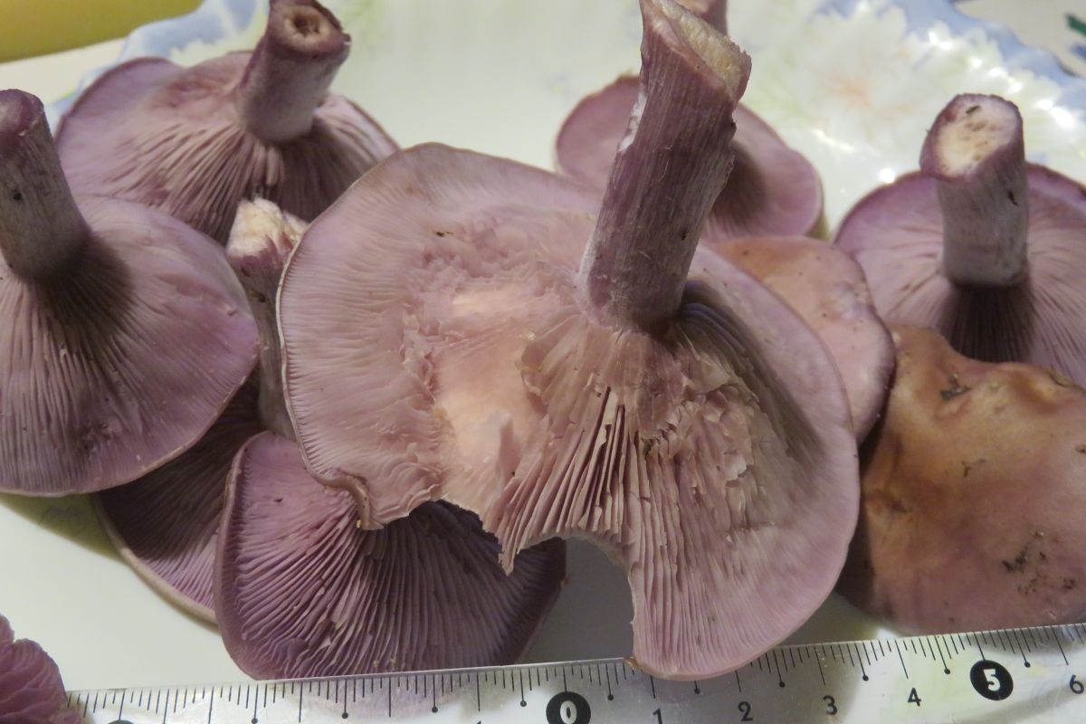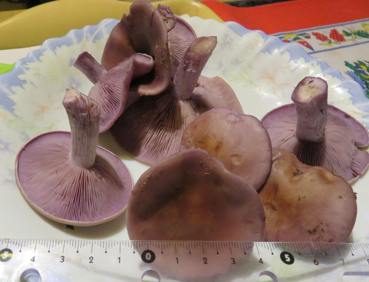 2) Violetter Rötfelritterling (Lepista nuda), aber ohne viel Geruch... Die Lamellen sind ausgebuhtet angewachsen und verschiebbar. Die Hüte haben braune töne, die Lamellen sind blass violett. Was kann das sonst noch sein als Violetter Rötelritterling?