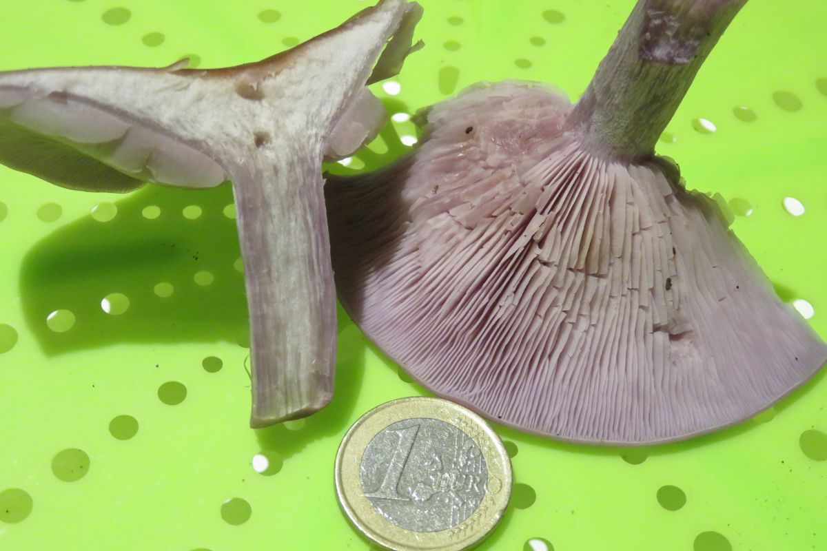 Wenn Lepista nuda irgendwie etwas zu klein ist und eher schmächtig und dabei eben nicht nach lepista nuda riecht, dann ist es eine lila Farbvariante von Lepista sordida (Schmutziger Rötelritterling). Wir hatten vorgestern einen solchen Fruchtkörper, du erinnerst dich?