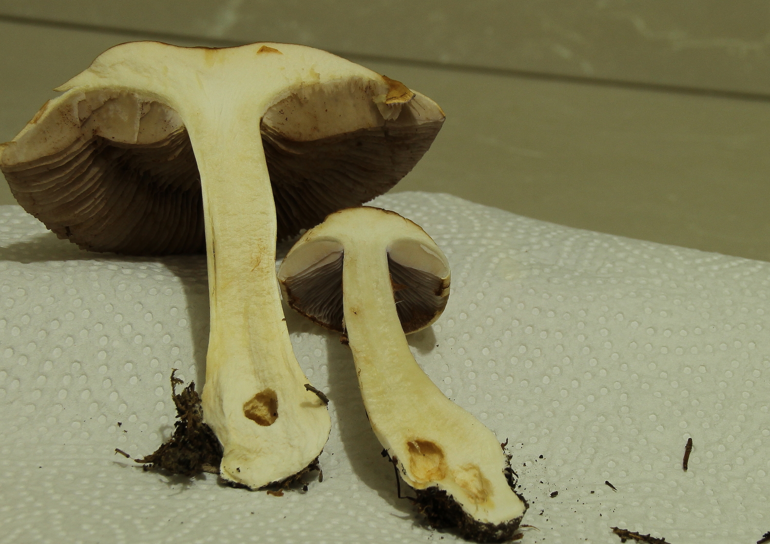 Die Lamellen schön violett,teilweise ins bräunliche gehend.