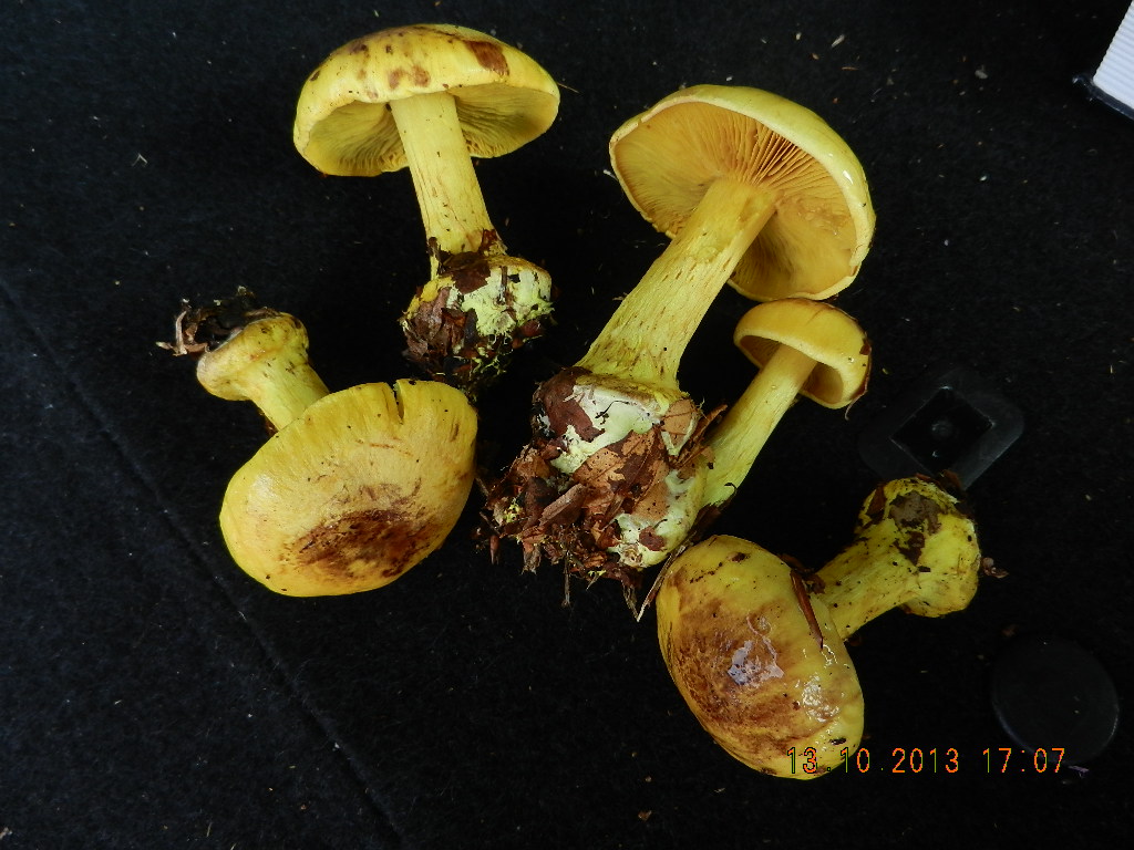 Vierdns: Eher nicht essbarer Cortinarius spec. = Klumpfus mit satt gelbem Fleisch