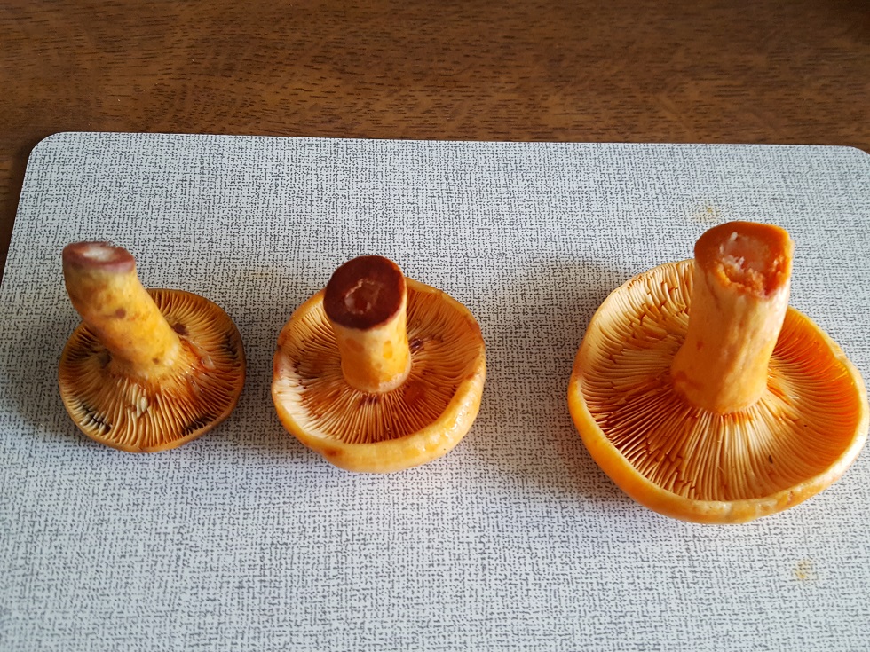 wenn ich richtig geschaut habe, dann kann der Mittlere ein Edelreizker sein und der Linke ein spangrüner Lachsreizker.