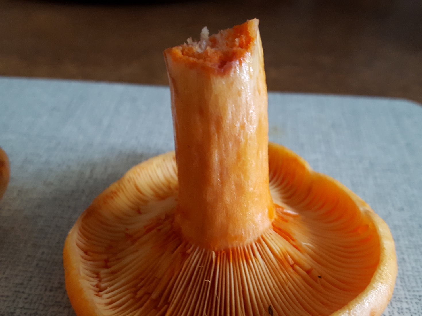 Was mich bei deinem rechten Exemplar (ich bleibe beim Angesagten :D ) im Hinblick auf L. deliciosus durchaus bekräftigt ist der im Inneren wattige Stiel, der mit dem Alter des Fruchtkörpers auch hohl sein kann. Dein Fund ist da gerade in der Zwischenphase.