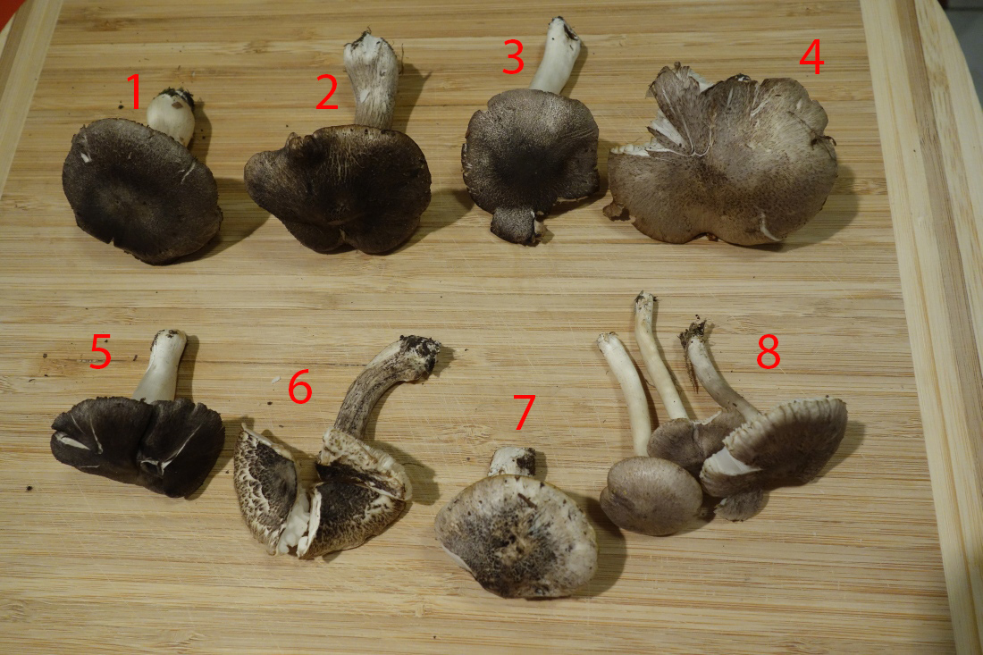Sämtliche Detail-Bilder sind etwa 24 Stunden nach dem Fund erfolgt, die Pilze lagen über Nacht in der warmen Küche (ich wollte eventuell Farbreaktion forcieren).