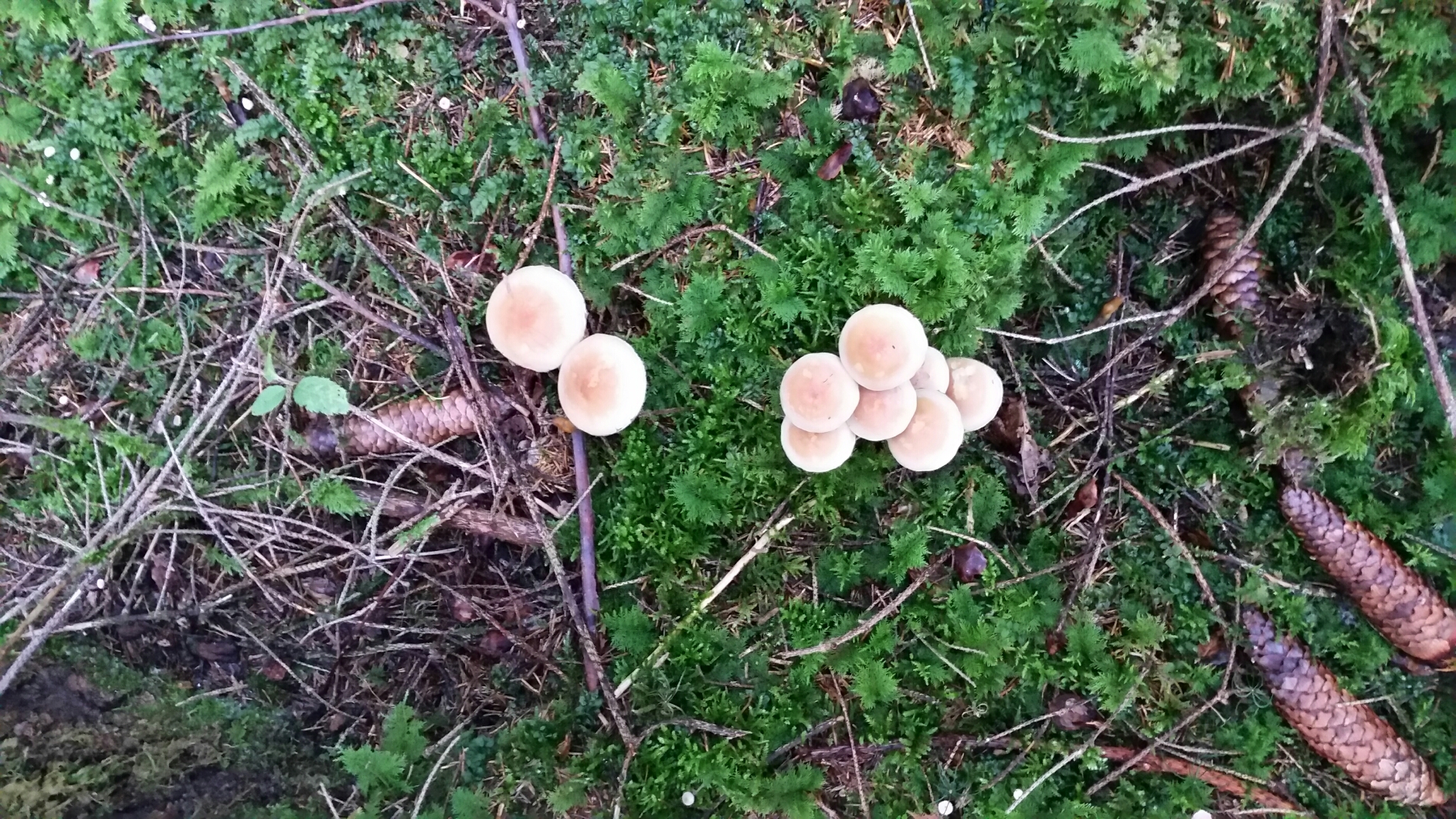 Außer Nebelkappen sind auf den Bildern noch hier und da Inocybe geophylla, Lepista nuda, Gymnopilus penetrans und Amanita spec. (Scheidenstreifling, unklare Art) zu sehen.