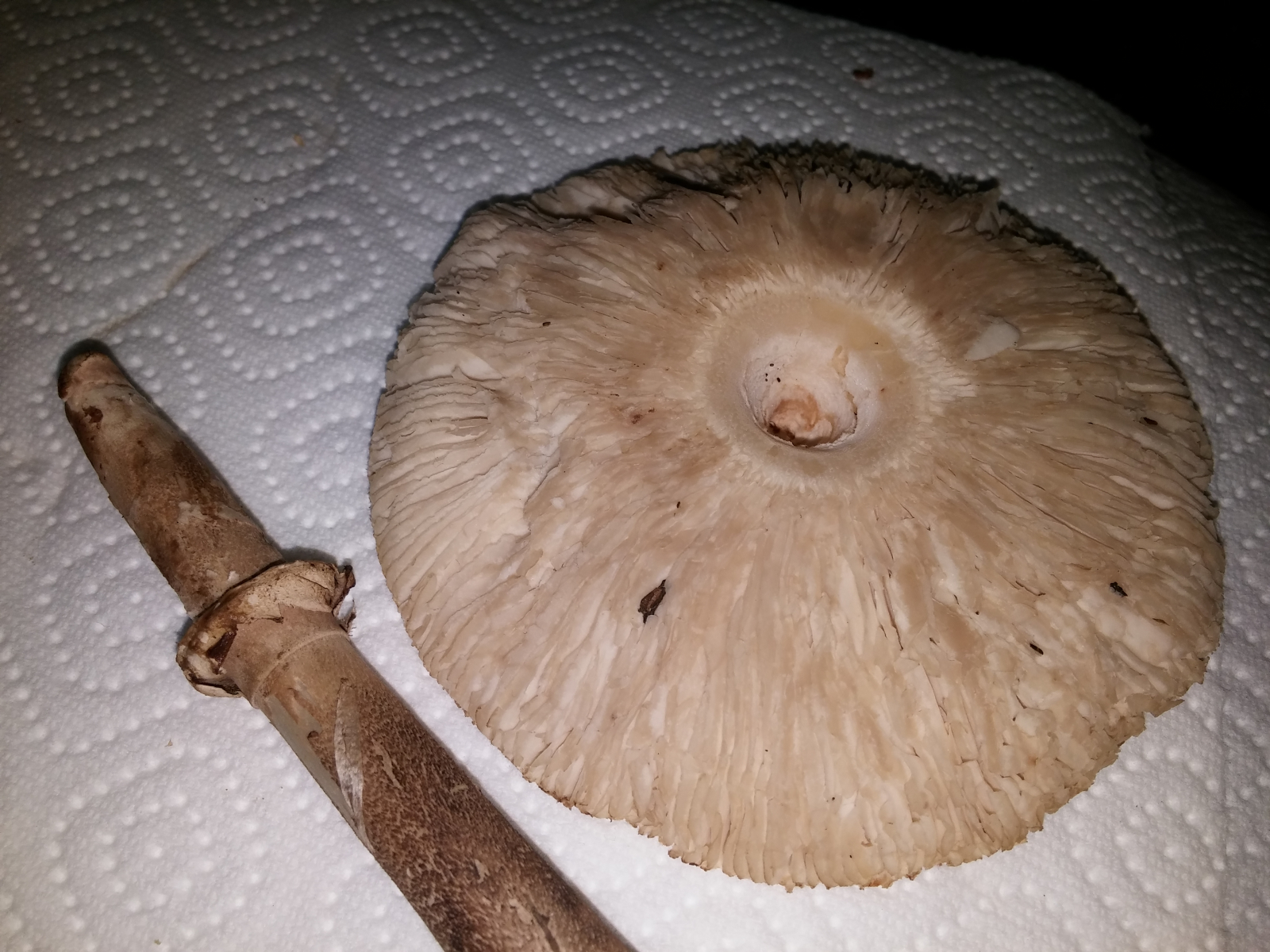 Zumindest, was ich sagen kann, dass alle Riesenschirmlinge, die nicht im Schnitt orange werden, prinzipielle essbar sind.