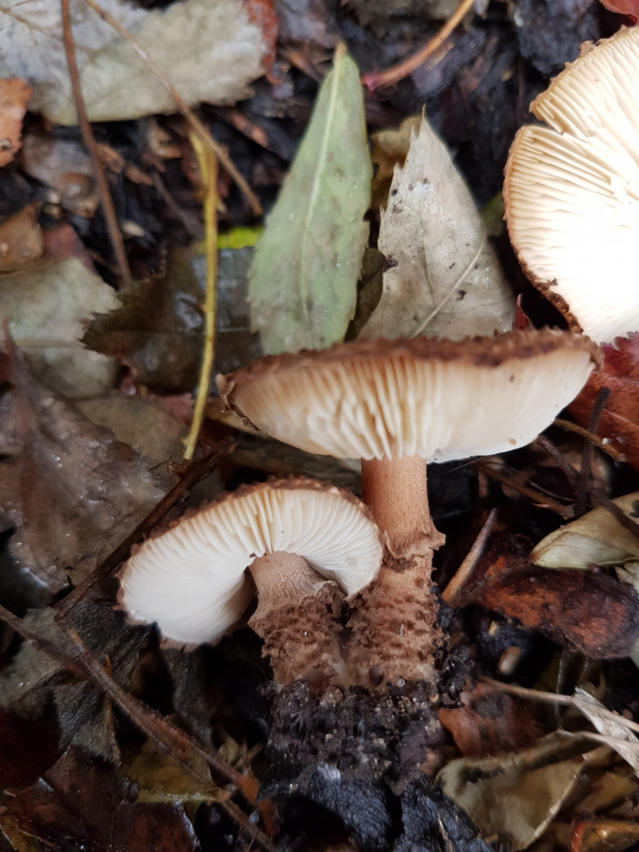 Das ist eine der Arten, die zwischendurch mal in der Gattung Echinoderma aus Lepiota isoliert wurden. Inzwischen alles wieder bei den Schirmlingen (Lepiota), aber in diesem fall ist es nicht der Spitzschuppige (Lepiota aspera), sodnern eine der selteneren und schwer zu bestimmenden Nachbararten (hystrix usw.).