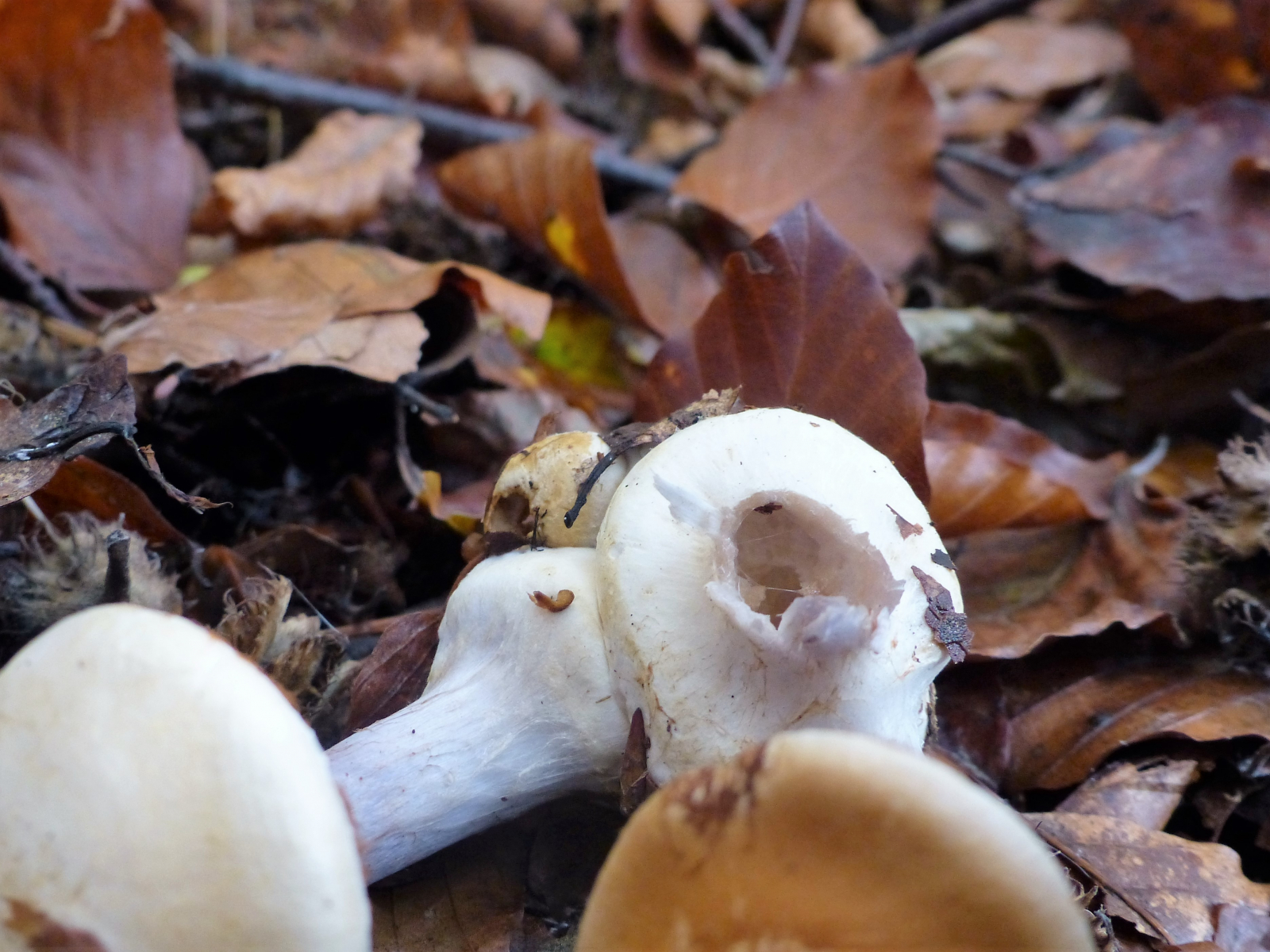 Stiel: ausgewachsen etwa 8-12 cm hoch, innen nicht hohl, voll ausgefüllt, Durchmesser etwa 3 cm, unten eine Knolle, es sieht so aus, als würden daraus die "Kinder schlüpfen", also eine leere Hülle ist noch da, jung noch ein Ring aus der Verschleierung etwa
