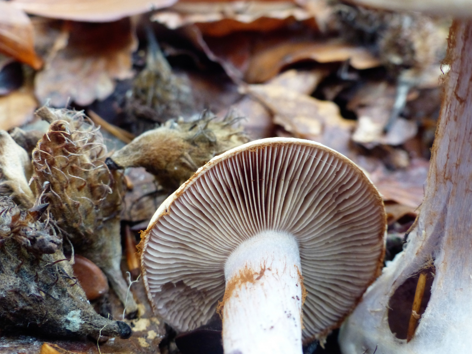 Lamellen: schmutzig, vollmilchschokoladigbraun, etwa 0,6 cm hoch, dichtstehend, etwas untermischt,