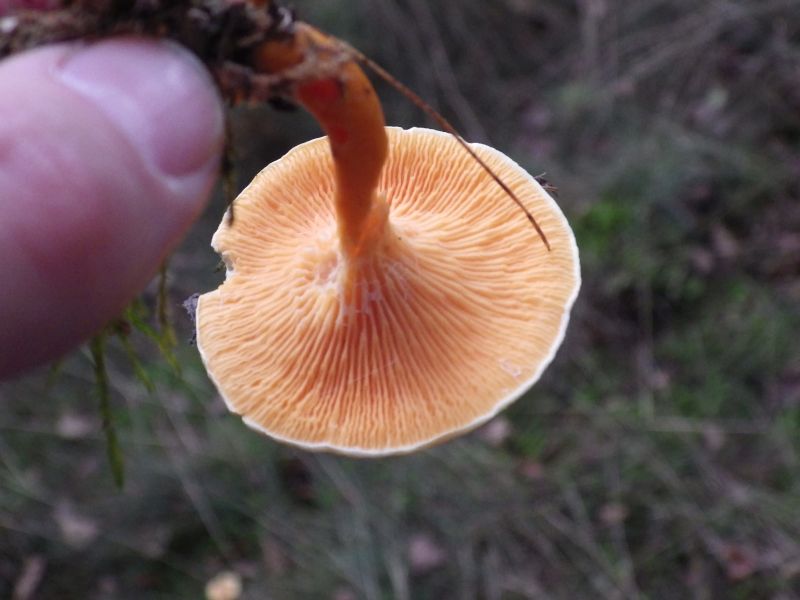 Der dritte war noch viel stärker gefärbt als es auf den Bildern erscheint (dar war es auch schon sehr bewölkt). Gefunden habe ich ihn in einen gemischten Laubwald, auch Fichten in der Nähe. Wuchsen auf der Erde oder auf alte Baumresten. Roch leicht nach Pilz.