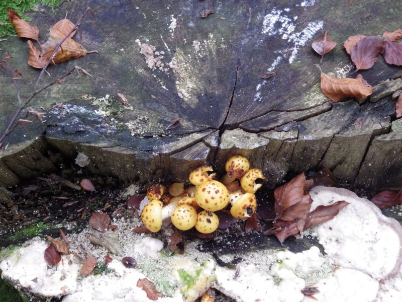 Der zweite war sehr fest verankert. Gelb, gepunktet. Roch auch sehr schwach. Kopf kugelig. Der Rest des Baumes war glaub ich eine Buche